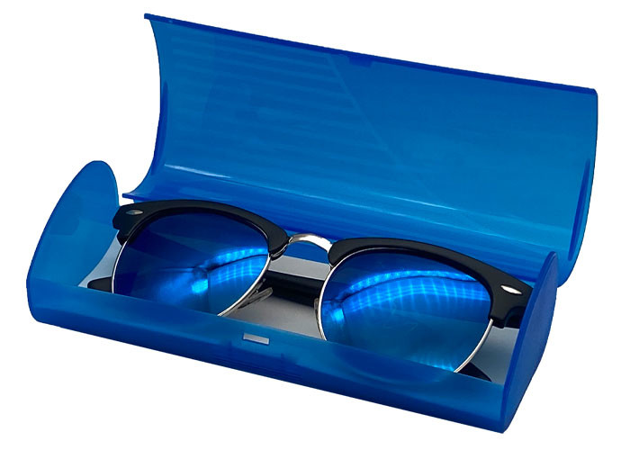 Caisse en plastique injectée de lunettes avec des charnières de forme de fantaisie et de bonne qualité.